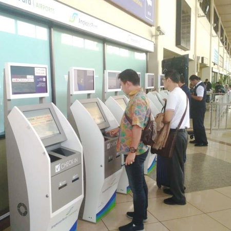 Cara menggunakan fasilitas ini sangat mudah. Pertama, calon penumpang cukup memilih maskapai penerbangan yang akan digunakan, lalu pilih ‘Lanjutkan’ dan ‘Check-in’. Setelah itu, masukkan kode booking yang Anda miliki dan pastikan data di layar sesuai data Anda. Kemudian, cetak boarding pass. Bagi penumpang tujuan luar negeri, Anda diharuskan memindai paspor. Setelah itu, boarding pass akan tercetak secara otomatis. Batasan waktu untuk menggunakan fasilitas check-in mandiri adalah 1 jam sebelum jam penerbangan.