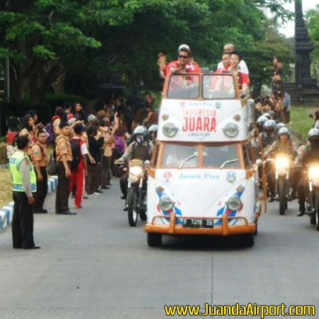 Pihak Bandara Internasional Juanda Surabaya bahkan telah menyiapkan ruang dan jalur khusus untuk mengantisipasi kepadatan di area bandara. Mereka dijadwalkan tiba di Terminal 2 Juanda pada pukul 14.30 WIB. Lalu menuju Bundaran Waru dan Jl. Ahmad Yani, kemudian Jl. Raya Darmi, Jl. Basuki Rahmad, dan Embong Malang.
