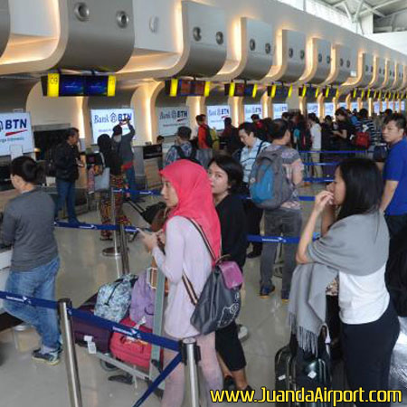 Sepekan usai Lebaran, jumlah lalu lintas penumpang dan pesawat di Bandara Juanda terus mengalami peningkatan. Pada Selasa (12/7) kemarin, kepadatan penumpang untuk keberangkatan domestik maupun internasional di Bandara Juanda mencapai total 68.510 orang atau naik 17,9 persen jika dibandingkan periode yang sama tahun lalu sebesar 58.117 penumpang.