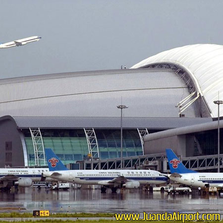 Penerbangan dari Surabaya menuju Guangzhou, China berangkat dari Bandara Internasional Juanda dan tiba di Bandara Internasional Baiyun. Durasi waktu yang dibutuhkan untuk melakukan perjalanan udara ini paling cepat 8 jam, karena ada perbedaan waktu 1 jam antara dua wilayah (Surabaya UTC +7 dan Guangzhou UTC +8) serta pesawat harus transit satu kali.