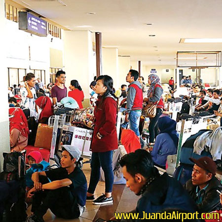 Sedangkan pada (20/6) lalu suasana Terminal 1 Bandara Juanda terpantau ramai dengan ratusan orang yang menanti sanak-saudaranya tiba di terminal kedatangan. Begitu pula dengan terminal keberangkatan yang mengalami kenaikan jumlah penumpang. Alhasil para penumpang yang tak memperoleh tempat duduk pun terpaksa menunggu di atas troli atau di lantai.