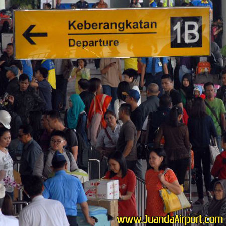 Sepekan usai Lebaran, ribuan penumpang terlihat masih memadati Bandara Juanda. Hingga Kamis (14/7) dini hari, tercatat ada 406 pesawat take off dan landing di Bandara Juanda atau meningkat 5,5 persen jika dibandingkan periode yang sama tahun lalu. Data dari Posko Terpadu Arus Mudik Bandara Juanda juga menyebutkan bahwa total penumpang hingga dini hari tadi mencapai 60.269 orang.